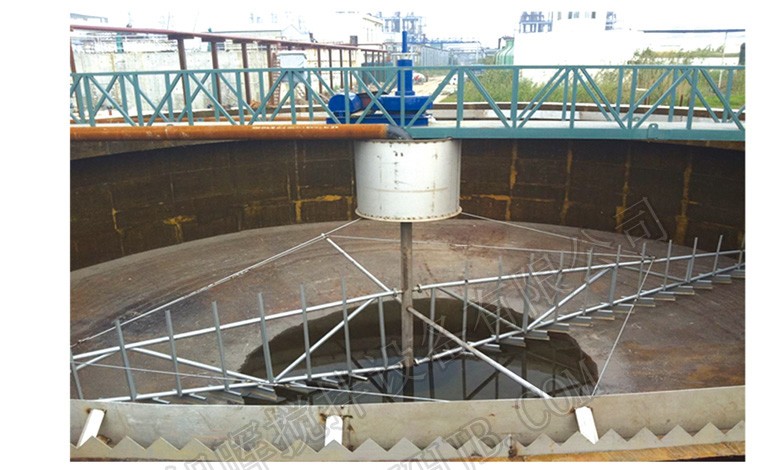 通過減速驅動和懸掛式組件的傳動,由刮板將污泥刮集到中心集泥槽,依靠凈水壓力或泵排出池外。采用中間進水和排泥,周邊排水,保證水流均勻,利用液位差自吸式排泥配有浮渣刮集排除裝置和過載保護裝置。